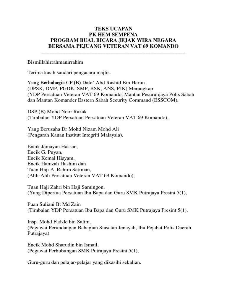 Teks Ucapan Pk Kokoucapan Dalam Bahasa Inggeris