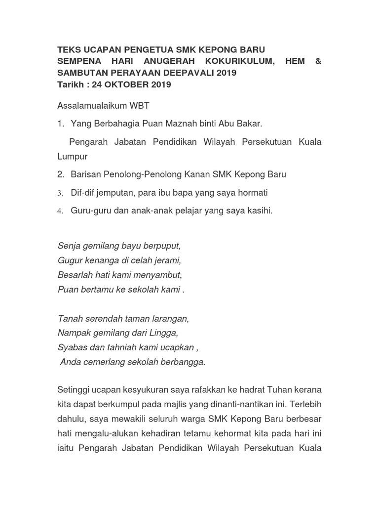Teks Ucapan Pengetua Hari Anugerah Koko Pdf